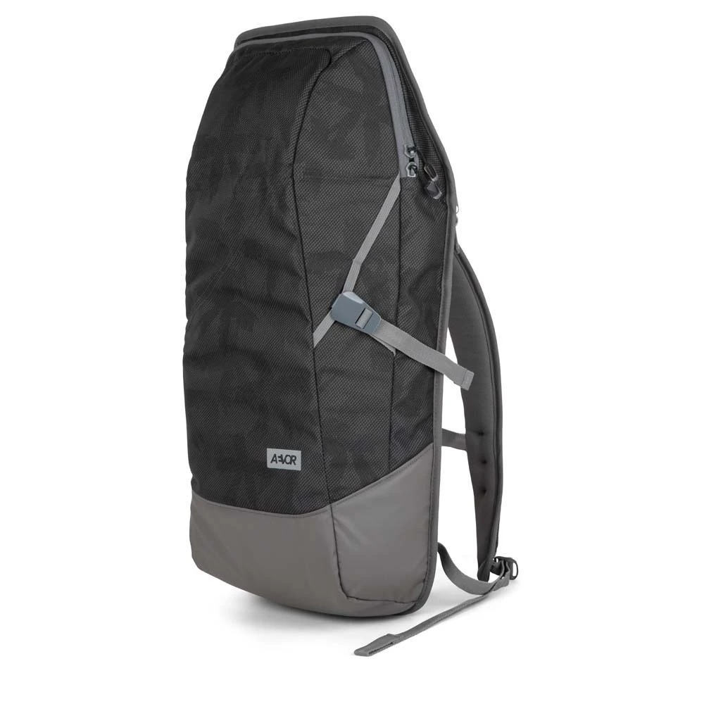 Der AEVOR Daypack ist ein wandelbares Raumwunder. Durch die Expandable-Funktion kann sein Volumen von umfangreichen 18 Litern auf ganze 28 Liter vergrößert werden. Mit zwei einfachen Handgriffen lässt sich der klassische Daypack von einem Einkaufsbegleiter zu einem Tragesystem für längere Wanderungen umfunktionieren. Inspiriert durch die Rucksäcke der New Yorker Fahrradkuriere garantieren die V-Form, die ergonomischen Schultergurte, sowie der verstellbare Brustgurt einen höchst kompakten und bequemen Sitz am Rücken.