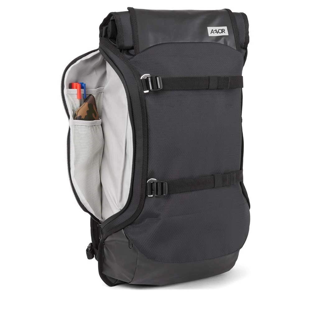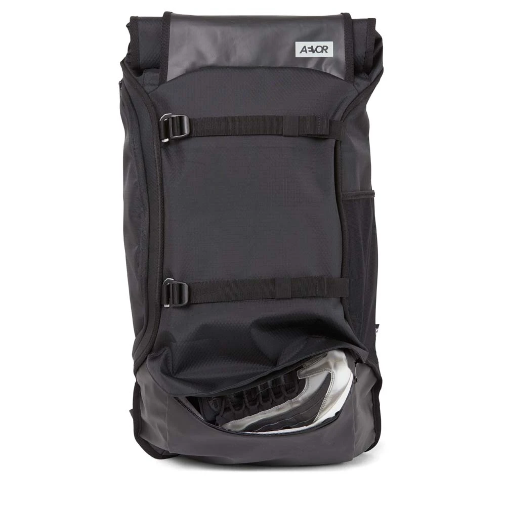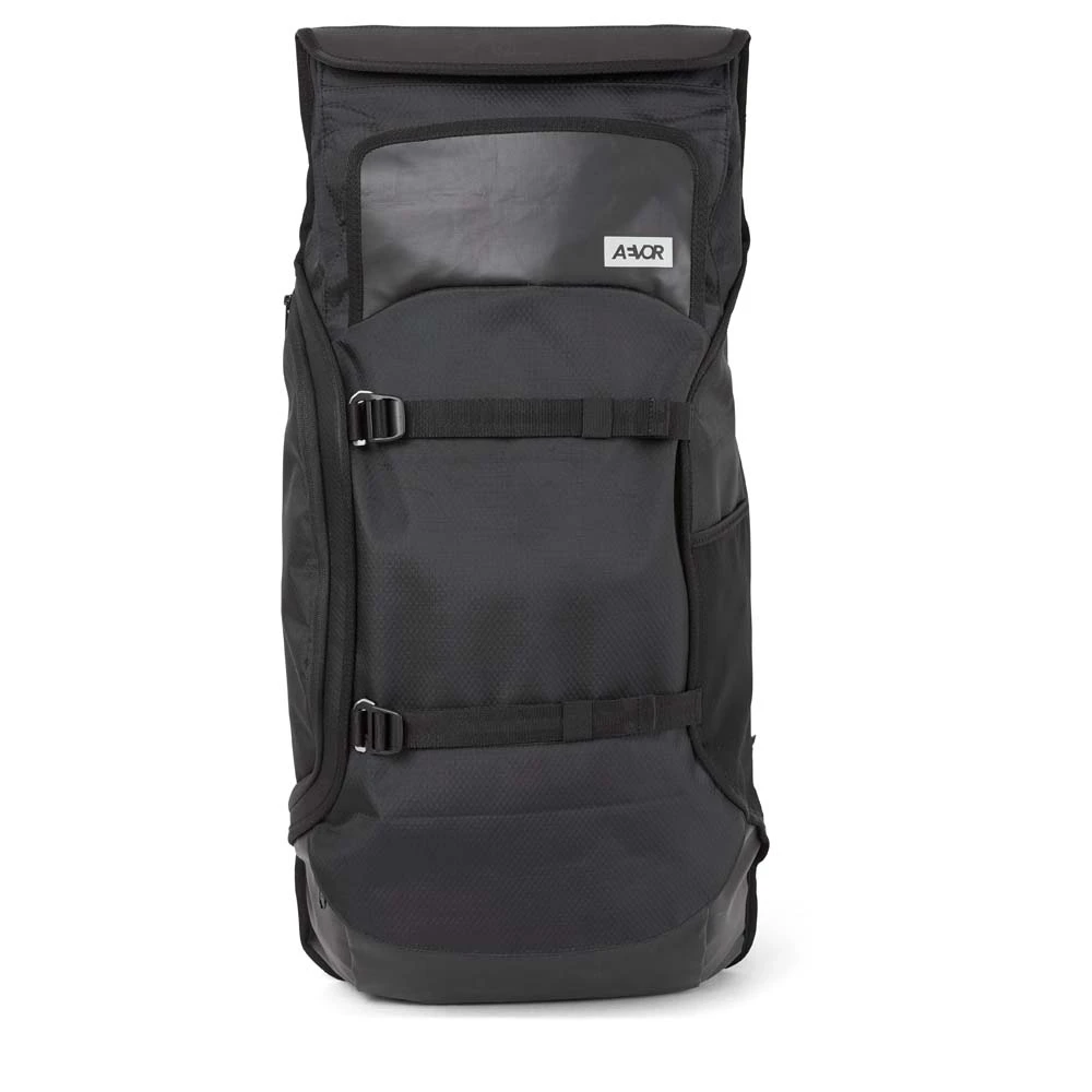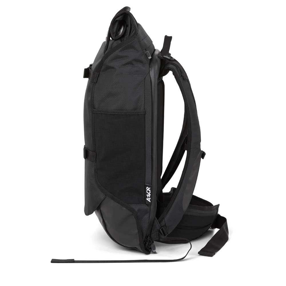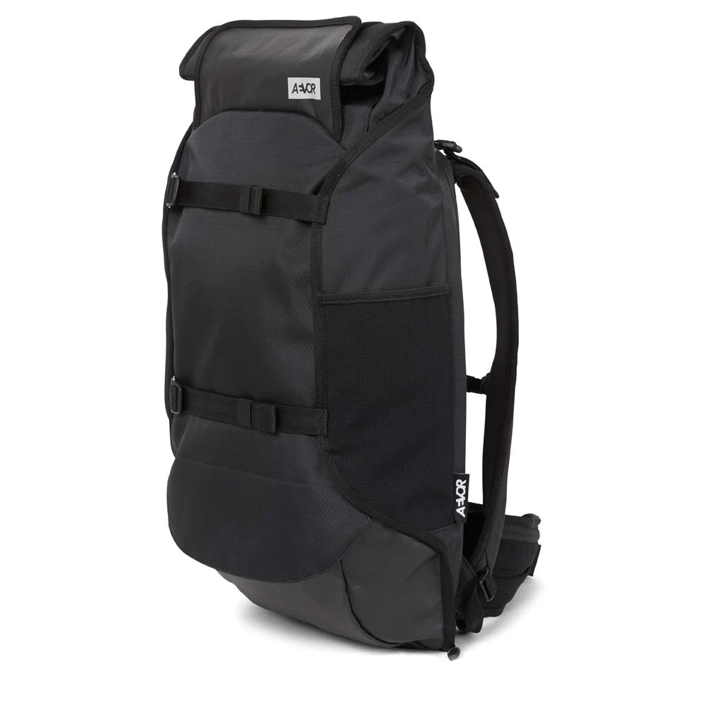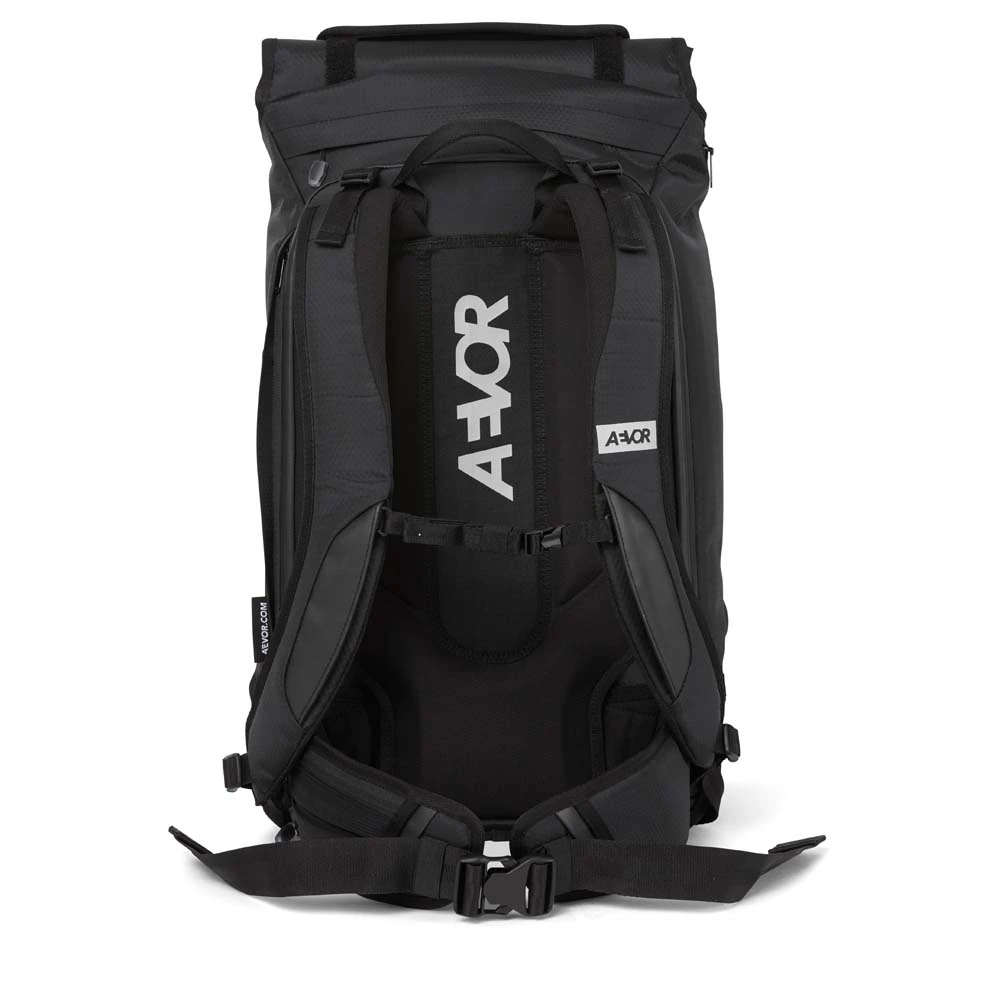 Der vielseitige AEVOR Travel Pack Proof ist bestens geeignet für Wochenendtrips: Er entspricht den Handgepäckbestimmungen und sein Volumen lässt sich dank Rolltop-System und ausklappbaren Seitenflügeln spontan um 7 L von 38 auf 45 Liter erweitern. Hoher Tragekomfort ist garantiert durch das atmungsaktive Rückenpolster sowie die gepolsterten Schultergurte, den verstellbaren Brustgurt und den abnehmbaren Hüftgurt. Zusätzlich bestehen die Außenstoffe des Travel Pack zu 100% aus recycelten PET-Flaschen.