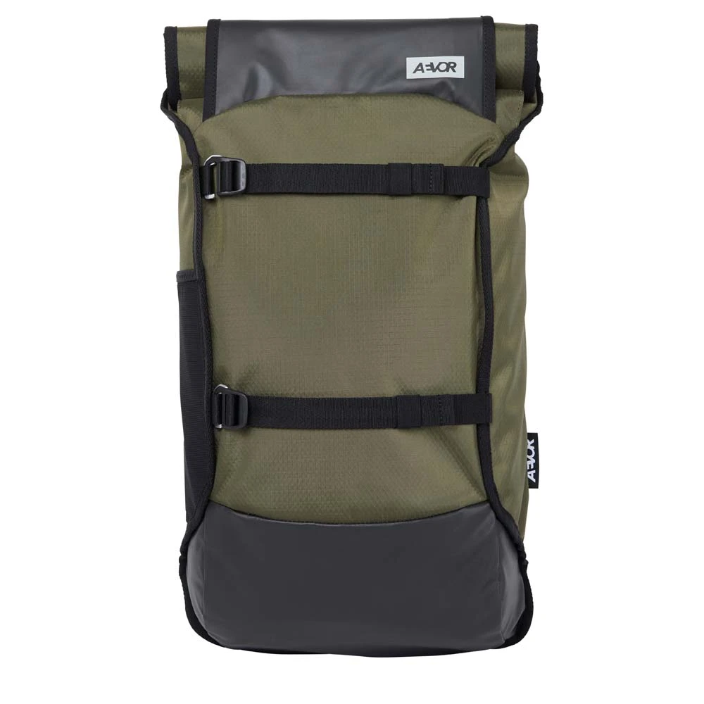 Der AEVOR Trip Pack Proof ist ein Tagesrucksack für all diejenigen, die sich in den urbanen Lebensstil verliebt haben. Er verfügt über eine gepolstertes Laptopfach (15″ – [bis 33 x 23 x 2 cm]), sodass man jederzeit sein Arbeitsgerät in das nächste Café bringen kann. Durch die ergonomischen Schultergurte trägt man ihn lässig über den Asphalt und der Brustgurt ist abnehm- und verstellbar. Muss mal mehr in den Rucksack stopfen, lässt sich der Raum von 26 Liter auf 33 Liter erweitern. Im Video unten kann man schön sehen, wie man dies wunderbar easy bewerkstelligen kann. Auch an intelligenten Rohstoffgebrauch wurde gedacht. Die verwendeten Stoffe bestehen zu 50% aus recycelten PET-Flaschen. Damit man auch bei schlechtem Wetter nicht den Spaß verliert, ist der Trip Pack wasserabweisend und im seitlichen Mesh-Flaschenfach bringt man die eigene Wasserflasche unter. Praktisch ist auch das Brillenfach mit Zipper-Zugang.