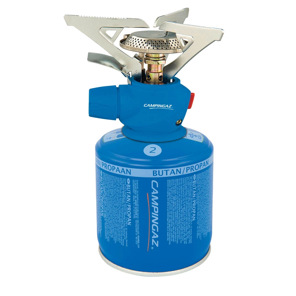 Der Gaskocher Twister Plus PZ von Campingaz ist ein kompakter Trekkingkocher mit integrierter Piezozündung und der einfachen Easy Clic Plus-Verbindung. Er ist außerdem mit einem integrierten Windschutz ausgestattet und bei der Bedienung des Regelknopfes schützt ein Hitzeschild die Hand.