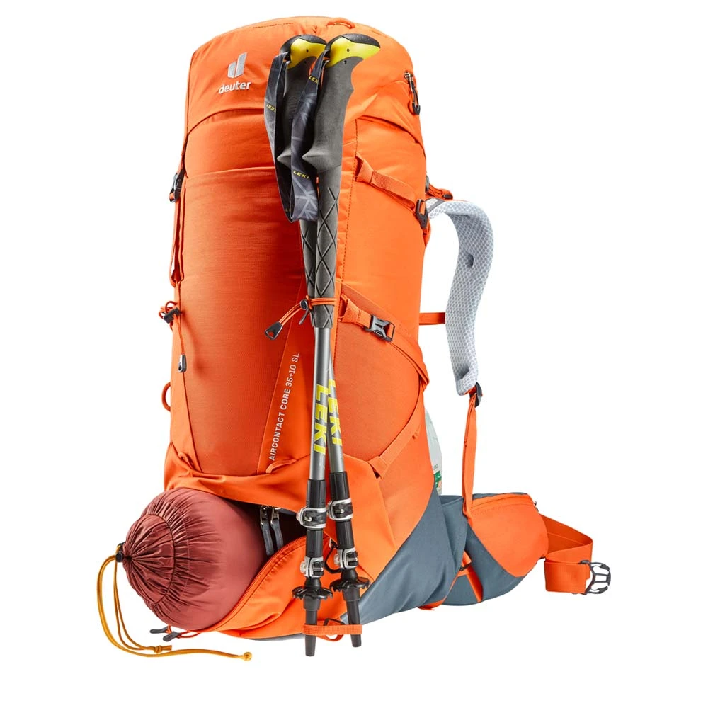 Mit dem Trekkingrucksack Deuter Aircontact Core 35+10 SL trägst du deine Ausrüstung auch über unbefestigte Pfade.
