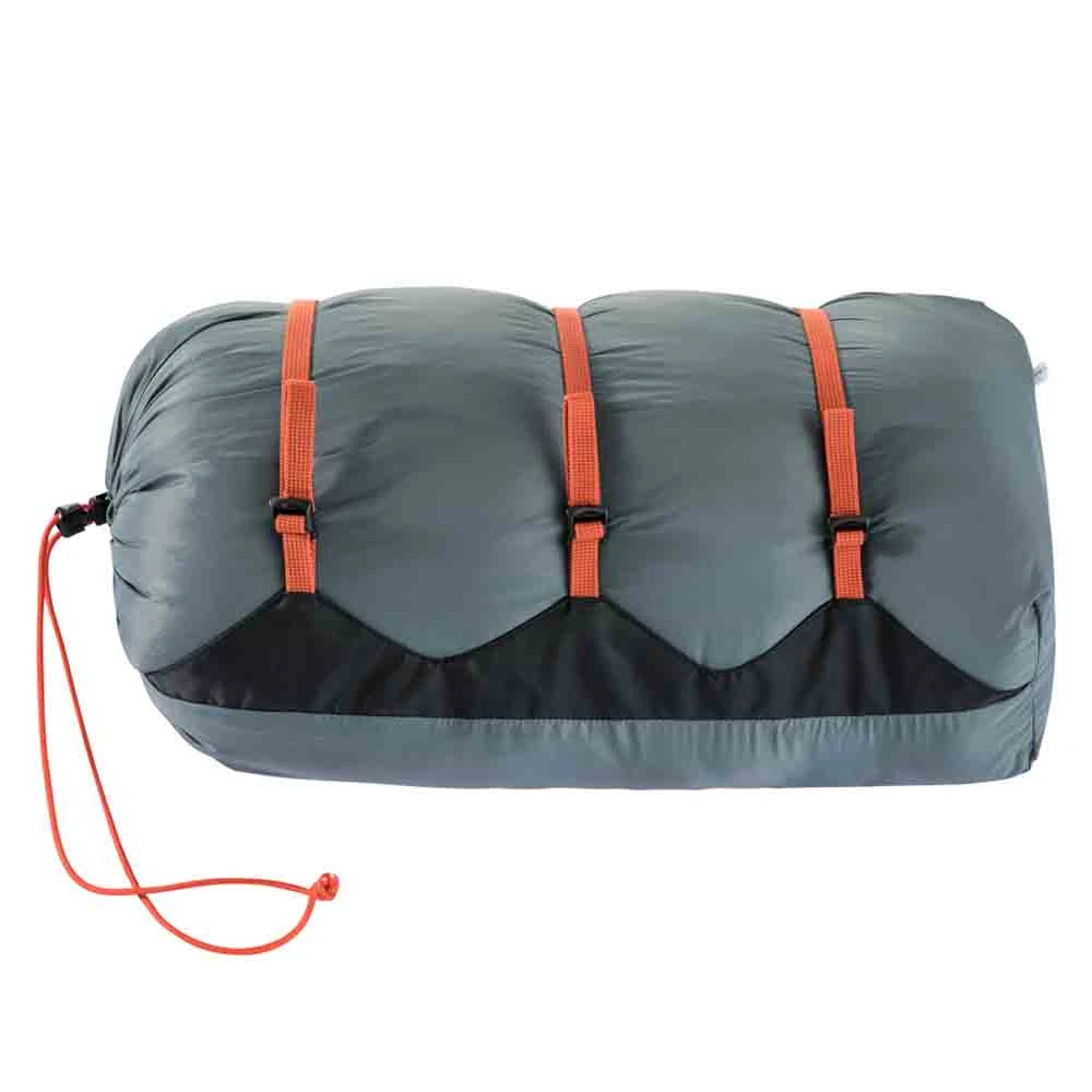 Der Astro Pro 600 EL Daunenschlafsack von Deuter sorgt auf anspruchsvollen Trekking- oder Bergtouren für angenehme Nächte. Dank trapezförmiger Kammerkonstruktion schmiegt sich die Innenhülle optimal um den Schläfer und verhindert somit wirksam kalte Lufträume. Innerhalb der geräumigen Außenhülle sorgt die um 25 % in der Breite dehnbare Innenhülle zugleich für angenehm viel Platz. Der sensible Bereich der Füße wird zudem durch die dreidimensionale Fußbox mit besonders komfortabler Füllung gewärmt ohne einzuengen.