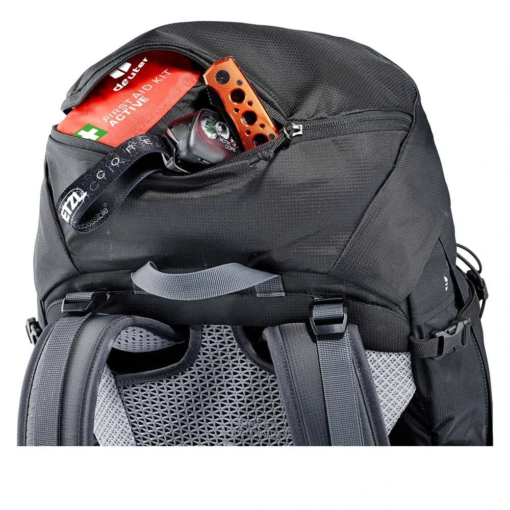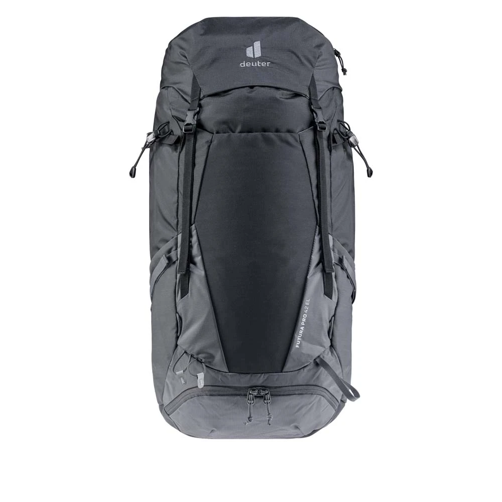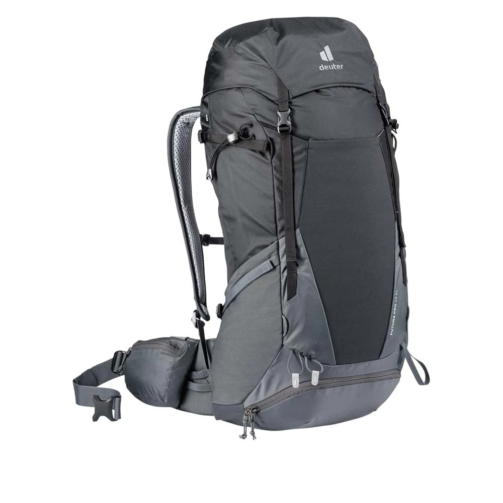 Der Futura Pro 42 EL von Deuter ist ein extra langer Wanderrucksack, der dich auf die nächste mehrtägige Trekking- oder Wandertour begleiten kann. Mit einem Volumen von 40 Litern kannst du in ihm alles für deinen Ausflug verstauen: von Wertgeständen im kleineren Innenfach bis zu Kleidung oder einer Trinkblase im Stretch-Innenfach und dem separaten Bodenfach. Mit seiner Wanderstockhalterung, der Frontstecktasche, der Pickelhalterung und den Außentaschen ist der Rucksack von außen ein echtes Platzwunder. Der Futura Pro 42 EL ist bequem, geräumig und durchdacht.