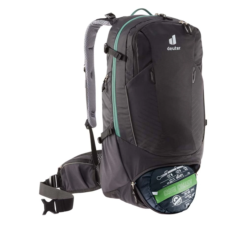 Der Fahrradrucksack Trans Alpine 32 EL von Deuter sitzt auch bei rasanten Fahrten fest auf deinem Rücken.