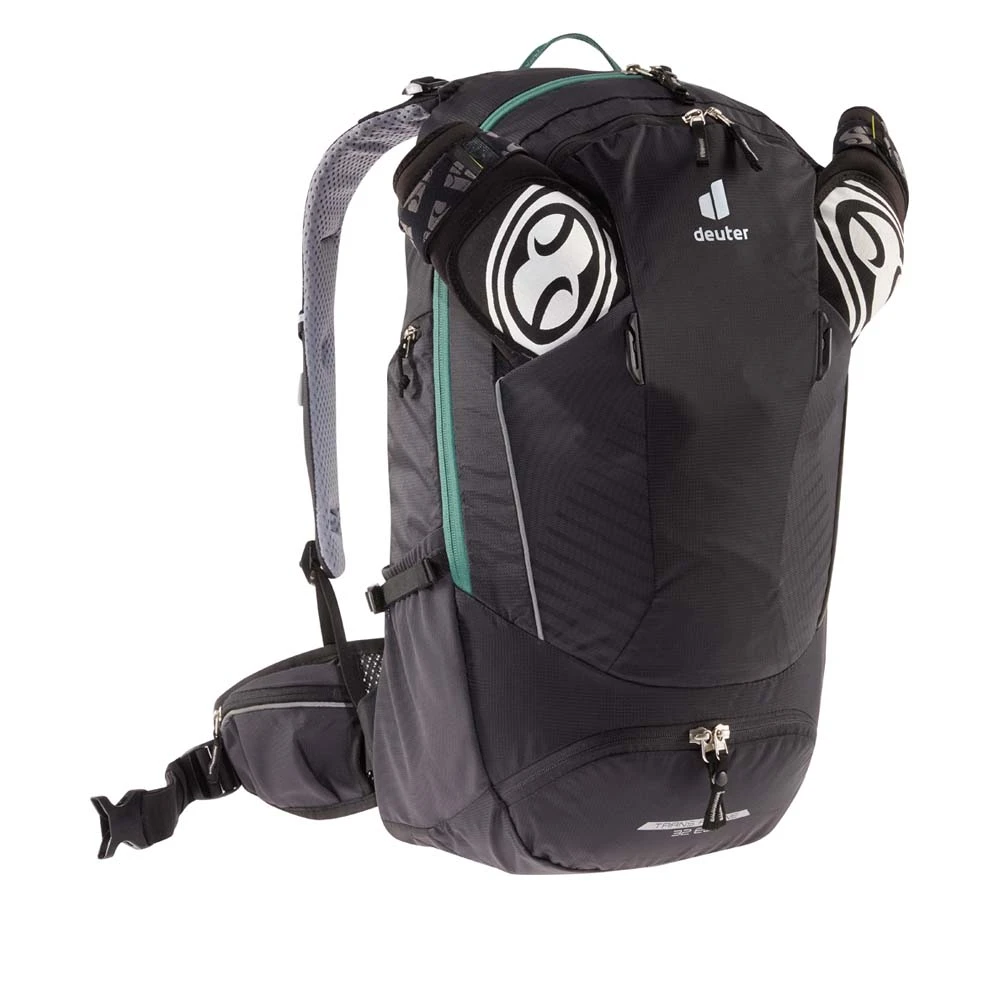 In seinen gut durchdachten Taschen findet alles seinen Platz Schuhe kommen in das separate Bodenfach, nasse Kleidung in das Stretch-Innenfach. Für Ersatzteile und Werkzeuge gibt es in der Vortasche eine eigene Reißverschlussnetztasche. Das Airstripes System gewährt dir idealen Bewegungsspielraum und lässt sich dank atmungsaktivem Mesh angenehm tragen.