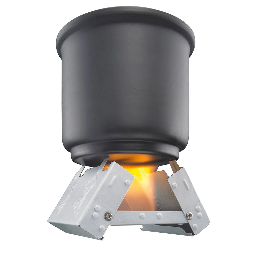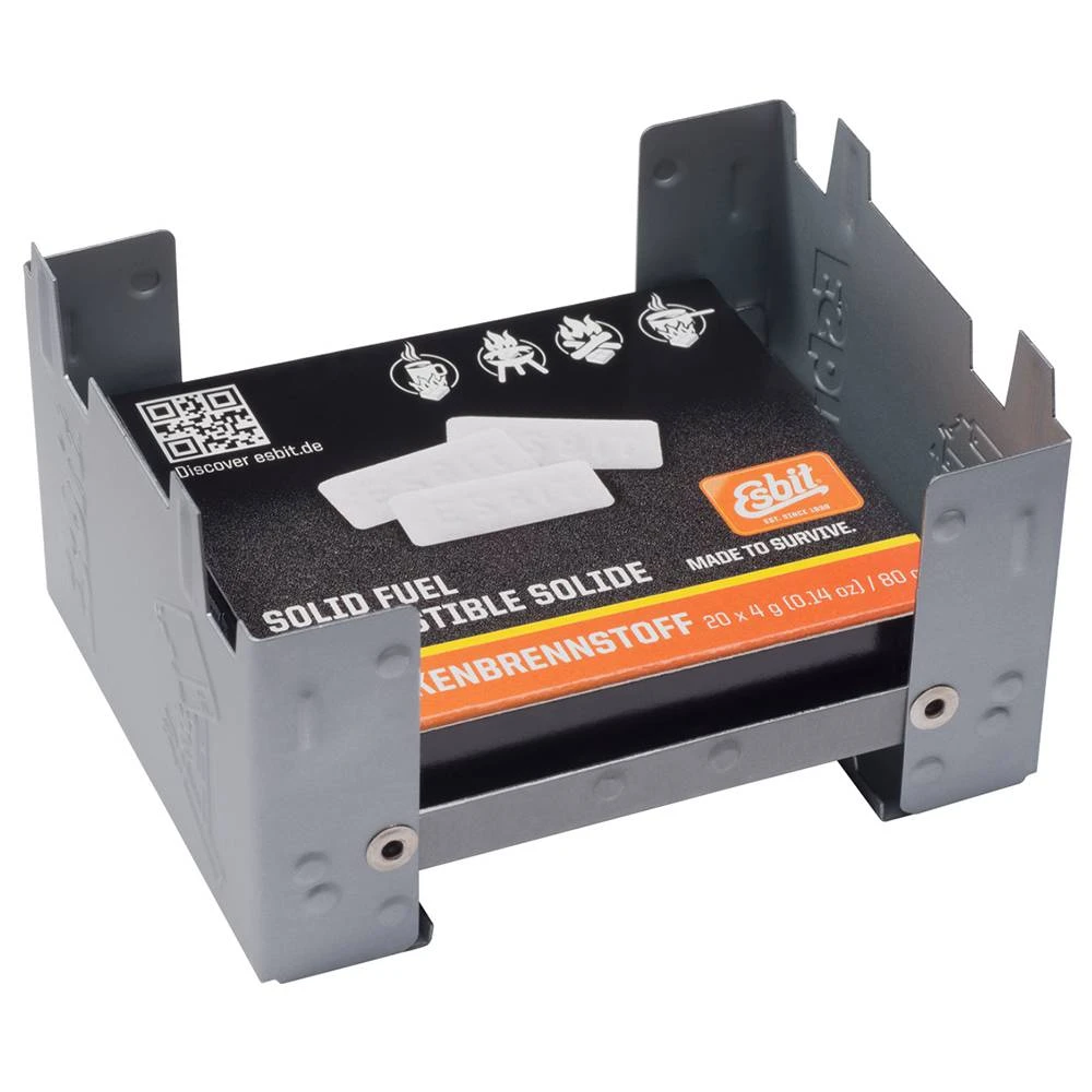 Der ESBIT Taschenkocher, Inzwischen weltbekannt! Komplett mit einer Packung Trockenbrennstoff. Eignet sich hervorragend für Tagestouren oder Minimalisten.