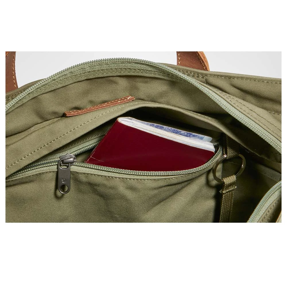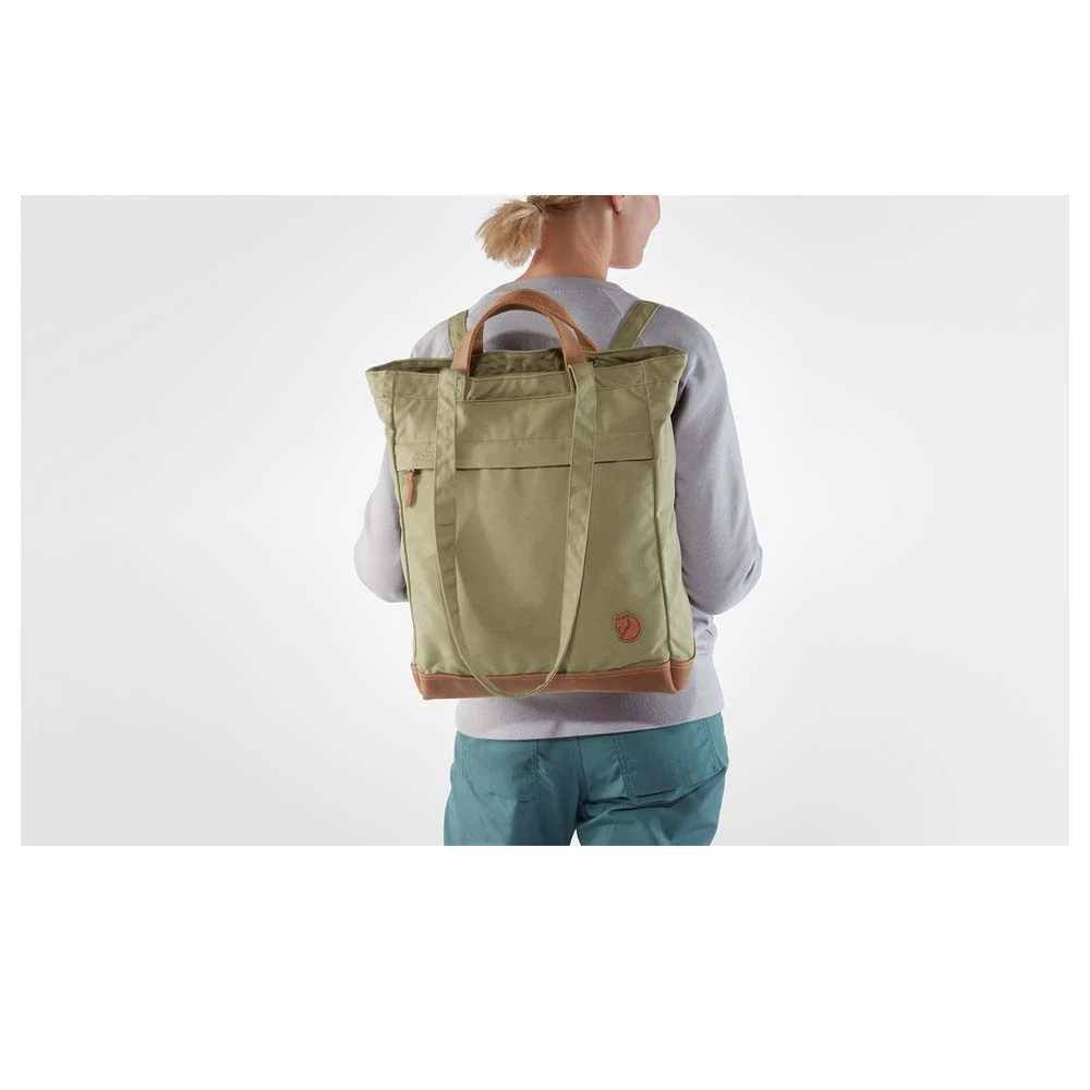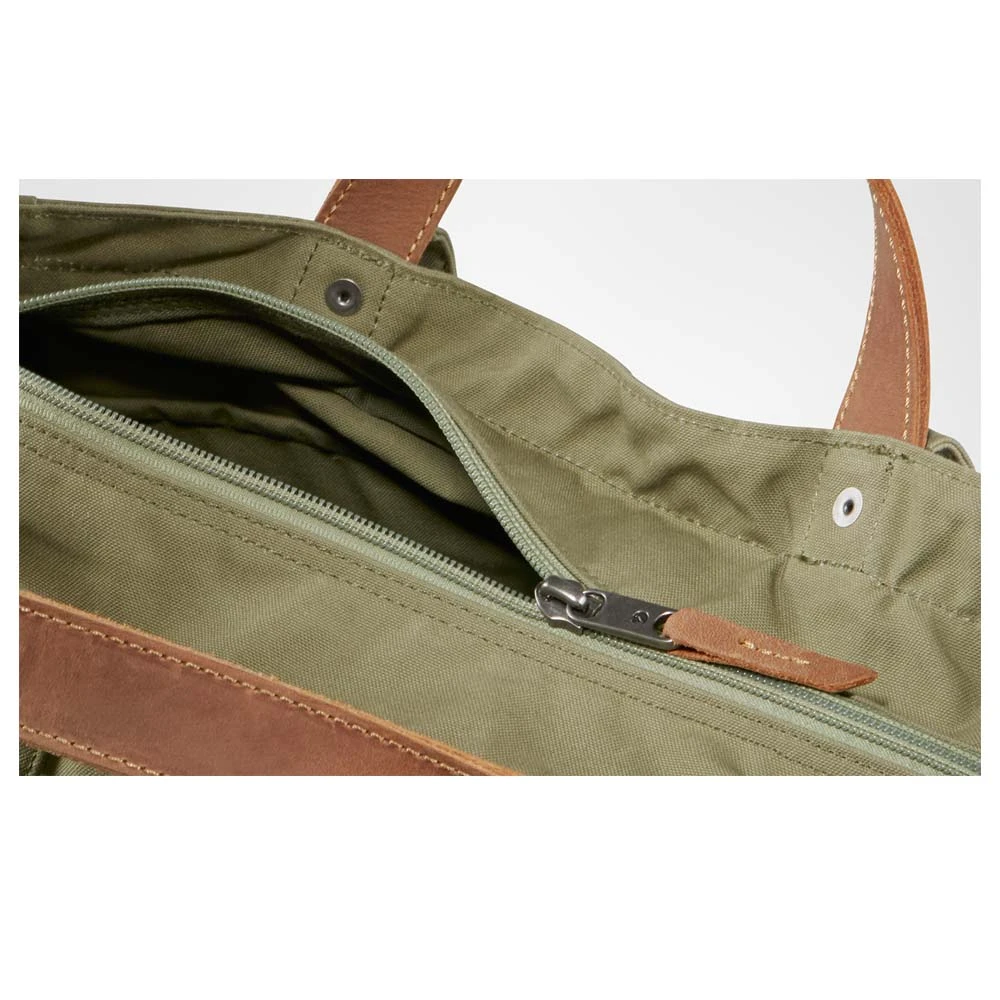 Die praktische Fjällräven Totepack No. 2 Umhängetasche besteht aus strapazierfähigem G-1000® Heavy Duty mit besonders robustem Taschenboden aus naturfarbenem Leder. Das Modell kann über der Schulter, an den Tragegriffen oder auf dem Rücken getragen werden. Es bietet Platz für Portemonnaie, Pullover, Tablet und alle anderen Dinge, die unterwegs schnell zur Hand sein sollen. Das Hauptfach wird per Reißverschluss geschlossen und besitzt eine kleine Innentasche. Außenfach mit Reißverschluss und Schlüsselhalter mit Textilband.