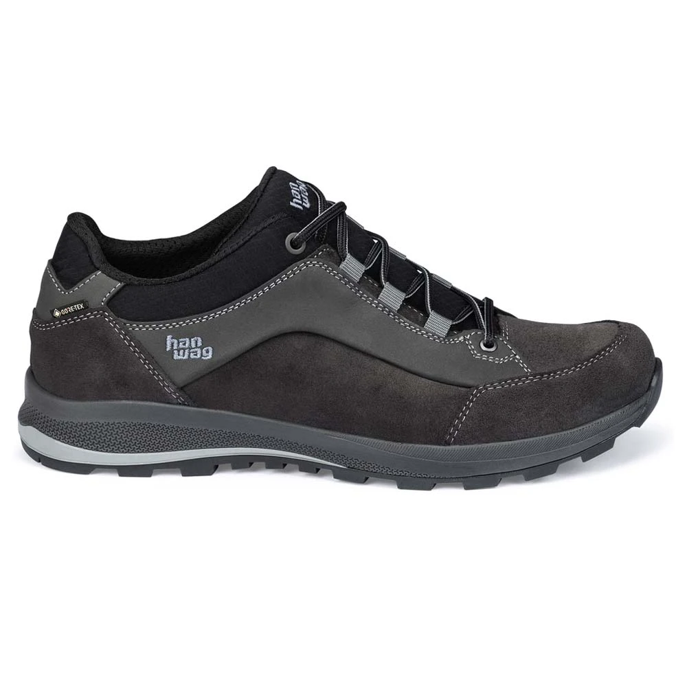 Mit dem HANWAG Banks Low GTX für Herren macht das Wandern einfach Spaß. Er ist zu 100% aus feinstem Nubukleder mit LWG (Leather Working Group)-Zertifizierung gefertigt – eine Zertifizierung, die nicht nur besonders hochwertiges Leder, sondern auch eine nachhaltige, umweltfreundliche Lederherstellung garantiert. Der 1,5 Millimeter dickere Polyurethan-Schaumkeil in der Zwischensohle sorgt für ein sanfteres Abrollen, eine spürbar bessere Dämpfung und einen länger anhaltenden Komfort. Der Banks ist für anspruchsvolle Wanderungen im Mittelgebirge und im Alpenvorland sowie für leichtere Hüttenwanderungen mit leichtem Rucksack geeignet. Und das GORE-TEX Futter hält die Füße zuverlässig trocken.