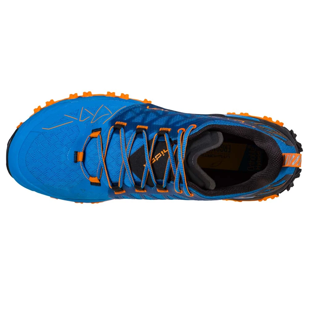 Der Bushido II GTX für Herren von La Sportiva eignet sich perfekt für jeden Off-Road-Run. Der Trailrunningschuh aus GORE-TEX invisible fit-Membrane ist wasserdicht und eignet sich hervorragend auch bei regnerischem Wetter. Der extra leichte, haftende und angriffslustige Schuh wurde für die Skyraces-Welt sowie für den Einsatz in den Wintermonaten entwickelt und garantiert perfekte Trittsicherheit in jedem Offroad-Gelände. Dank der STB Control-Konstruktion reicht die auf der Seite des Obermaterials platzierte TPU-Struktur nach unten und umhüllt die Zwischensohle im mittleren Bereich. Dadurch wird der Schuh stabilisiert. Diese Lösung ermöglicht es, durch die synergetische Arbeit von Obermaterial und Zwischensohle eine enger anliegender Passform sowie eine bessere Gesamtstabilität zu erreichen. Außerdem wurde das Gewicht reduziert, weil keine schweren Stabilizer-Einsätze im mittleren Bereich des Schuhs mehr nötig sind. Die zweifache FriXion-Red-Mischung verfügt über differenzierte Aufstellflächen: Die runde Form der externen Stollen, die seitlich bis zur Zwischensohle reichen, schafft einen progressiven Aufstellwinkel mit dem Terrain und behält die Stabilität, auch wenn der Fuß nach außen gedreht wird. Somit kann man mit diesem Schuh auch auf hoch technischem Terrain mit Wurzeln, Steinen und Ästen in aller Sicherheit laufen. Maximale Unterstützung und Umhüllung im mittleren Bereich des Fußes, Bewegungsfreiheit und Komfort auf der Spitze. Das Ergebnis ist ein Schuh im puren La Sportiva-Stil, der neue Lösungen bietet, um die Bedürfnisse der anspruchsvolleren Läufer gerecht zu werden. Die Spielregeln werden neu geschrieben, mit einer Konstruktion, die unter den Trail-Running-Schuhen eine absolute Neuheit ist.