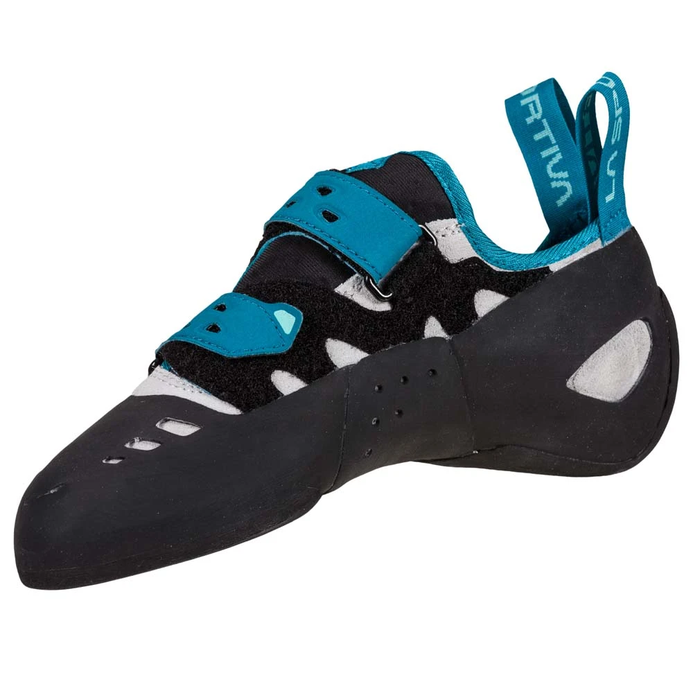 Der Tarantula Boulder für Damen von La Sportiva ist der ideale Kletterschuh für Damen, die sich der Welt des Indoor-Kletterns und insbesondere der Disziplin des Boulderns nähern. Er ist sensibel und nicht strukturiert und verfügt über ein Schnürsystem mit zwei gegenläufigen Straps: schnell und funktionell. Die neutrale Form macht ihn für alle Fußformen geeignet. Die Ferse wurde speziell entwickelt, um den Halt und die Anpassung an die Griffe und das Volumen beim Indoor-Bouldern beim Hooken zu gewährleisten. Die Zehenkappe aus Gummi wurde entwickelt, um Unterstützung beim Toehook und gleichzeitig Tragekomfort zu gewährleisten. Die halbe Sohle ermöglicht eine höhere Sensitivität und sorgt für einfachere Neubesohlung.