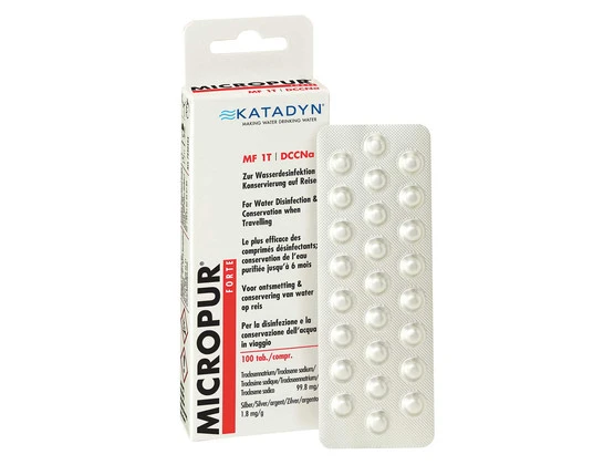 Schnelle und wirkungsvolle Wasserdesinfektion für klares Wasser mit MICROPUR Forte MF1/50T. Findet in jedem Gepäck Platz. Schützt dank Silberionen bis zu 6 Monate vor Wiederverkeimung. Bei trübem Wasser in Kombination mit einem Filter einsetzen. Anwendung: In Camps, beim Reisen und Wandern.