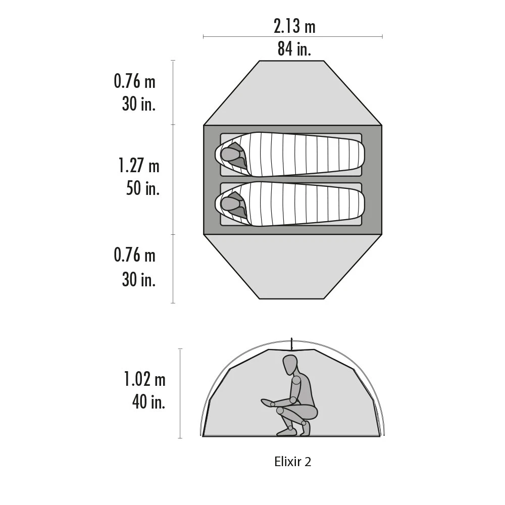 Das MSR Elixir 2 bietet flexible Einsatz- und Aufstellmöglichkeiten: nur das Außenzelt zusammen mit der Zeltunterlage (inkl.) für ein geringes Gewicht, nur das Innenzelt, für Einsätze in trockenen, warmen Regionen, oder das Außenzelt zusammen mit dem Innenzelt und der Zeltunterlage, für den universellen Einsatz.