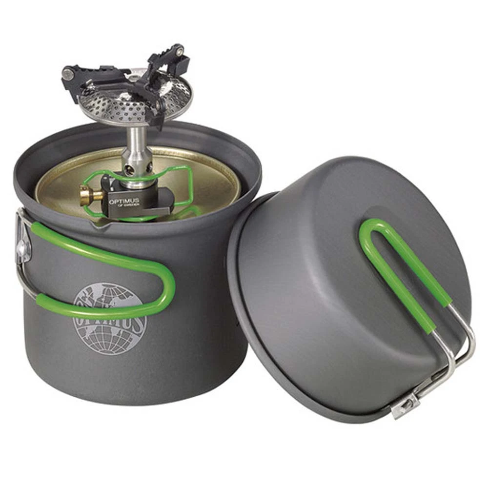 Das Optimus Crux Lite Kochsystem ist für all diejenigen, die nach einer Outdoor-Küchenausrüstung suchen, aber möglichst wenig mitschleppen wollen. In dem Set erhalten Sie einen Gaskocher, einen Topf (Fassungsvermögen 0,6 Liter) und eine Bratpfanne, die auch als Deckel verwendet werden kann. Alles kann zusammengesteckt werden, sodass sehr wenig Platz in Ihrem Rucksack weggenommen wird. Der Gaskocher erhitzt einen Liter Wasser in ca. 3 Minuten (je nach Klima, Höhe etc.). So können Sie sich bei Heißhunger, schnell eine Mahlzeit zubereiten.