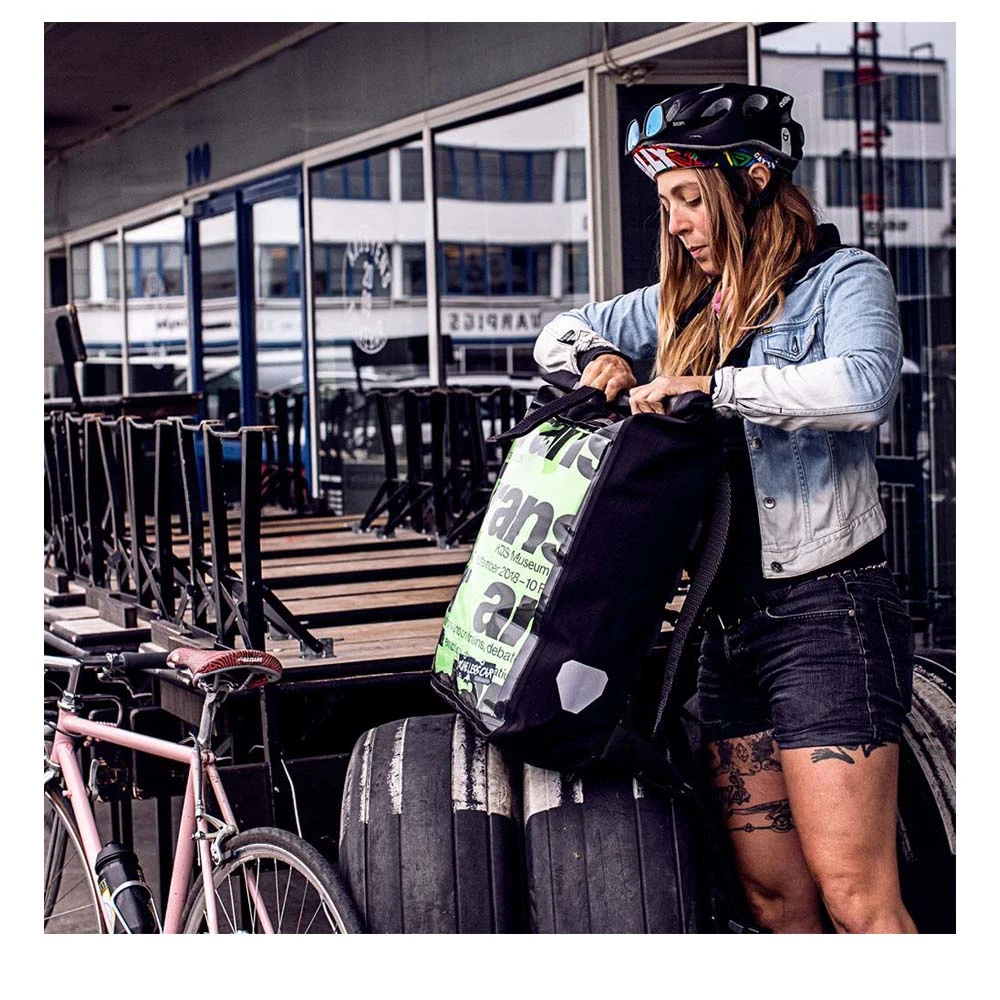 Die Ortlieb Messenger Bag-Pro ist eine Tasche für Kuriere und Vielfahrer. Sie besteht aus wasserdichtem Planmaterial und erfreut durch ein schlankes, funktionales Design. Durch den praktischen Rollverschluss wird eine flexible Packhöhe ermöglicht für insgesamt 39L Volumen. Hinter das transparente und wasserdichte Einsteckfach kann man ein A3-formatiges Plakat schieben. So können Sie die Fläche für Werbung verwenden.