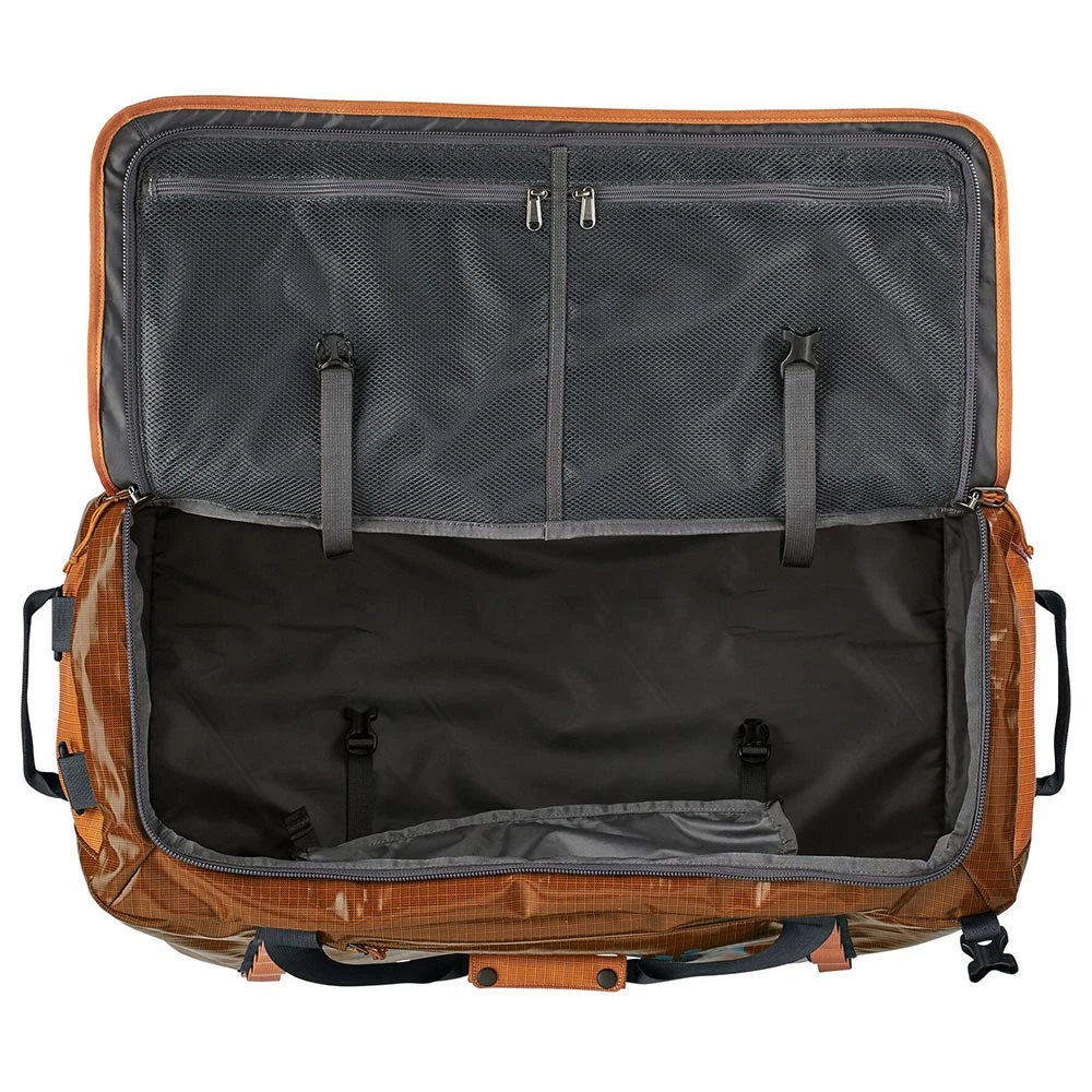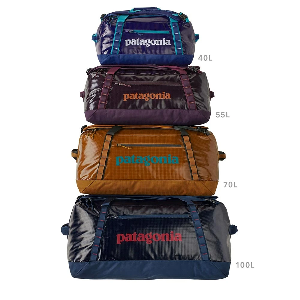 In den zweitgrößten Patagonia Black Hole Duffel passt genug für einen ausgiebigen Wochentrip. Die Tasche ist dazu robust und absolut wetterfest. Das Hauptfach öffnet sich über einen U-förmigen Reißverschlussdeckel, der auf der Unterseite ein Paar Netztaschen mit Reißverschluss für leicht verlorene Gegenstände wie Flugtickets oder andere Unterlagen hat. Eine Außentasche mit Reißverschluss bietet Platz für alles, was schnell griffbereit sein muss. Die gepolsterte Bodenplatte sorgt für Struktur und hilft, die Last zu dämpfen, wenn Seesack mal etwas gröber behandelt wird. Zu den Tragemöglichkeiten gehören gepolsterte, abnehmbare Rucksackgurte, Handgriffe mit Druckknopfverschluss und Transportschlaufen an beiden Enden zur Verbindung mehrerer Taschen. Mit Daisy Chains können Sie zusätzliche Ausrüstung nach außen verzurren. Hergestellt aus 14-oz 900-denier 100% recyceltem Polyester-Ripstop (22% lösungsgefärbt) mit einem TPU-Folienlaminat und ausgekleidet mit 3,3oz 200-denier 100% recyceltem Polyester mit Polyurethanbeschichtung. Beide Stoffe haben eine DWR-Beschichtung (durable water repellent).