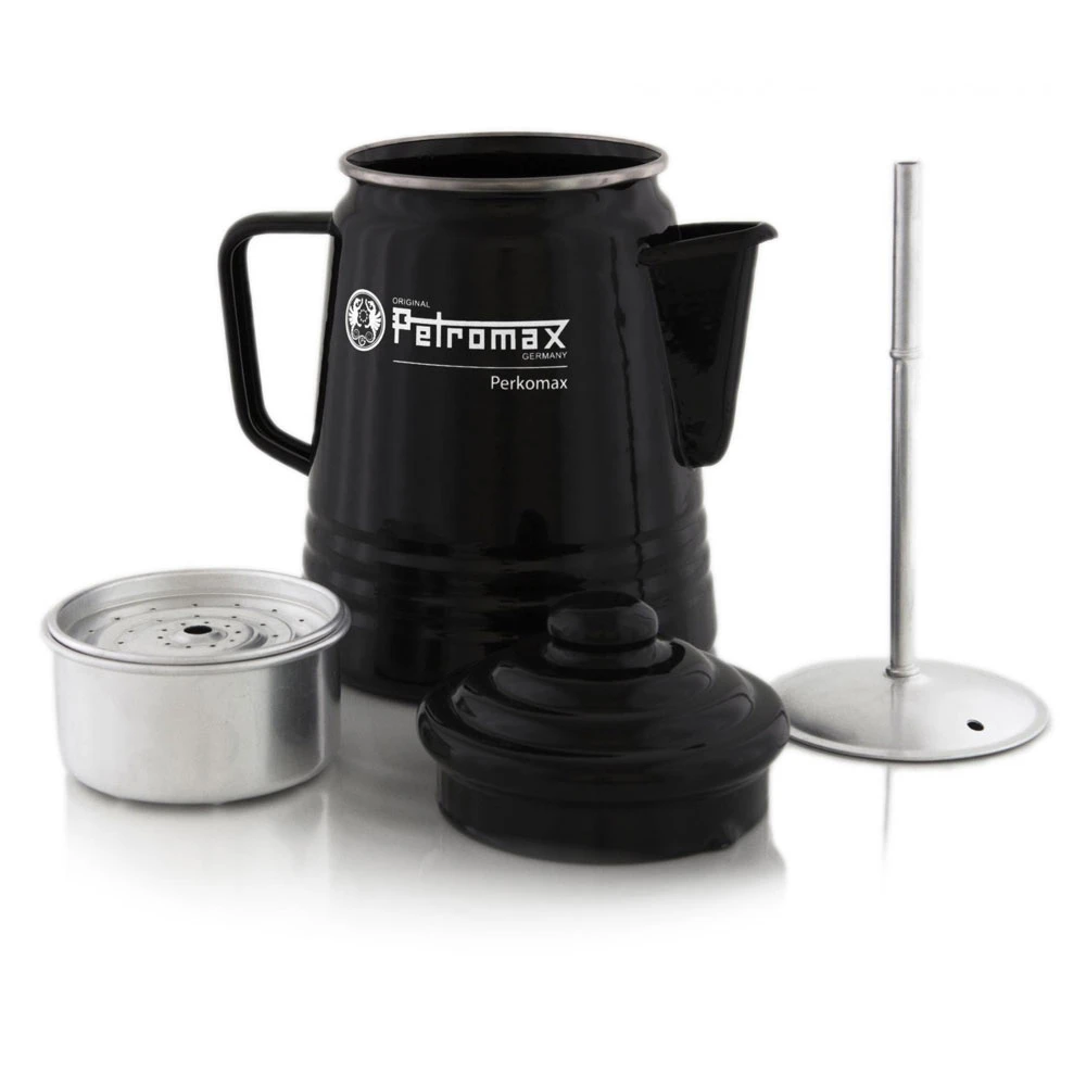 Der Tee- und Kaffee-Perkolator von Petromax bereitet Kaffee und Tee aromatisch und ohne viel Aufwand zu. Der Perkolator ist für drinnen und draußen geeignet und funktioniert auf dem Grillrost oder über dem Lagerfeuer ebenso wie auf einer Kochplatte oder einem Herd. Eine Füllung ergibt bis zu neun Tassen Tee oder Kaffee, je nach Temperatur der Hitzequelle und der Wassermenge variiert die Zubereitungsdauer.