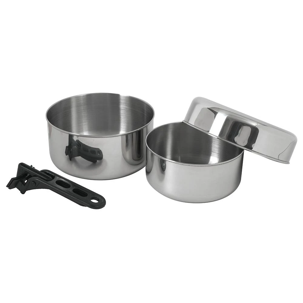 1 – 2-Personen-Kochset für Urlaub, Outdoor und Camping. Mit praktischem ABS-Topfgriff.