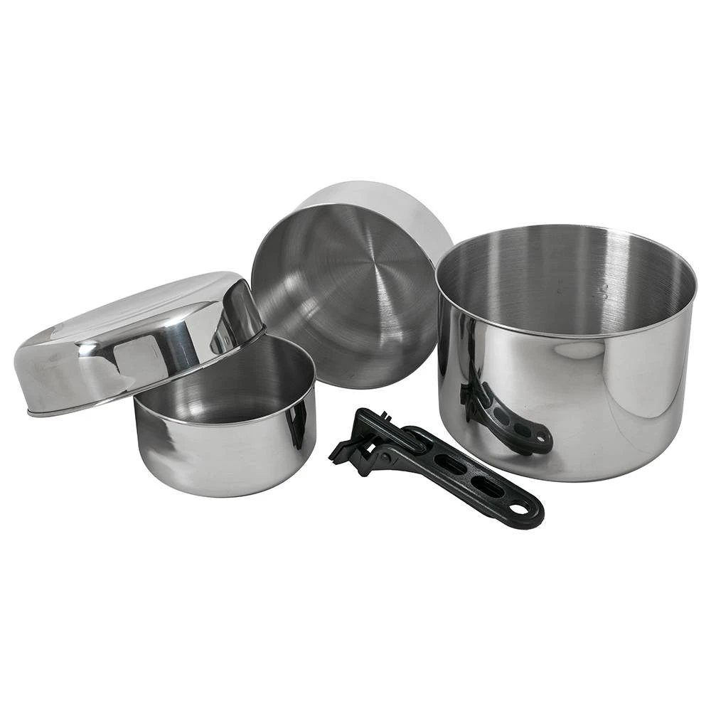 Das große Set für Familien, Gruppen oder die größere Outdoorküche. Parallel zum Biwak Alu 3 haben wir dieses Set entwickelt, um auch in Edelstahl etwas mehr Volumen anbieten zu können. Ausreichend für 4 Personen. Mit Edelstahlgriff.