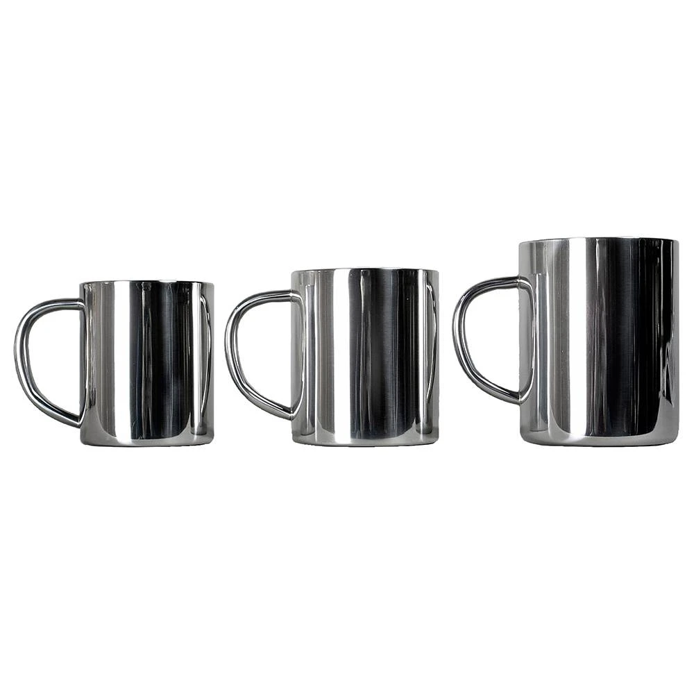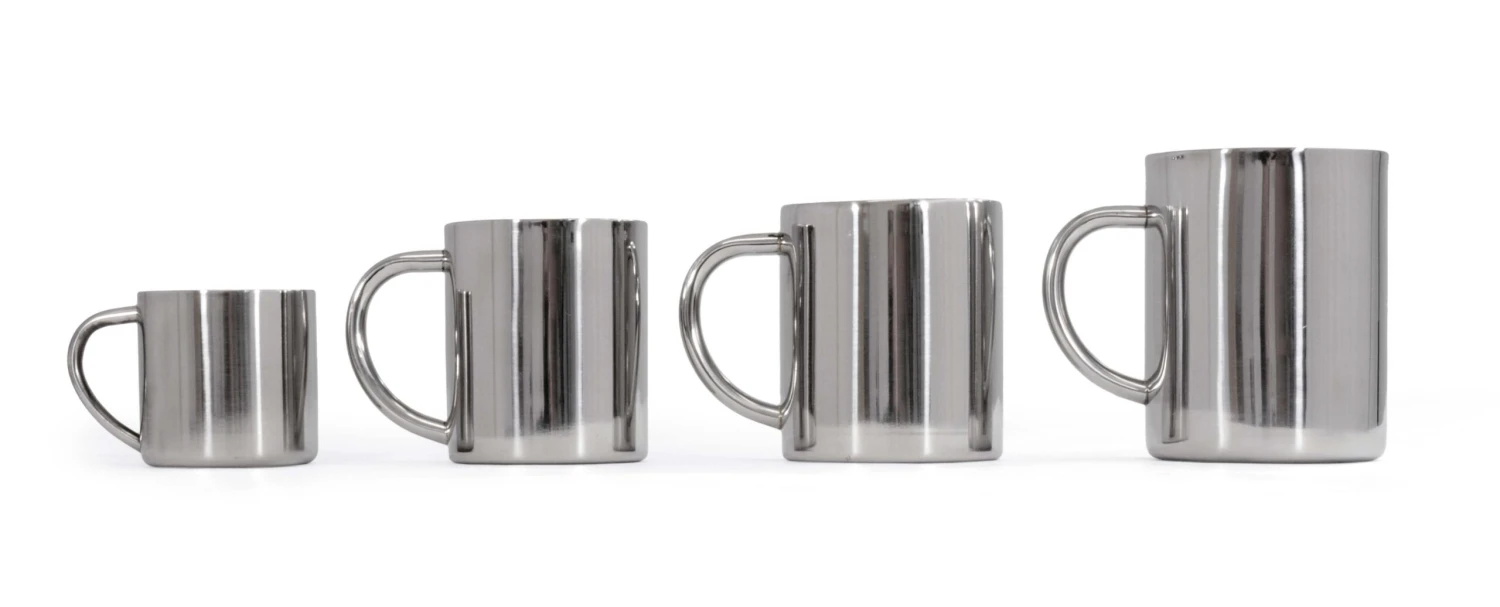 Die Thermobecher haben eine Doppelwandkonstruktion und einen eleganten und griffgünstigen Edelstahlgriff. Super poliert und in schönem Design.