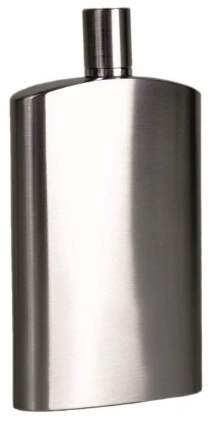 Sehr edler Flachmann aus gebürstetem Edelstahl mit polierten ‘Schultern’. Klares, sehr modernes Design. Schraubverschluss.