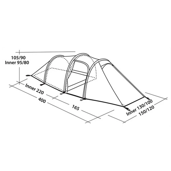 - Material (Außenzelt): 100% Polyester, flammhemmend, Wassersäule: 5000 mm