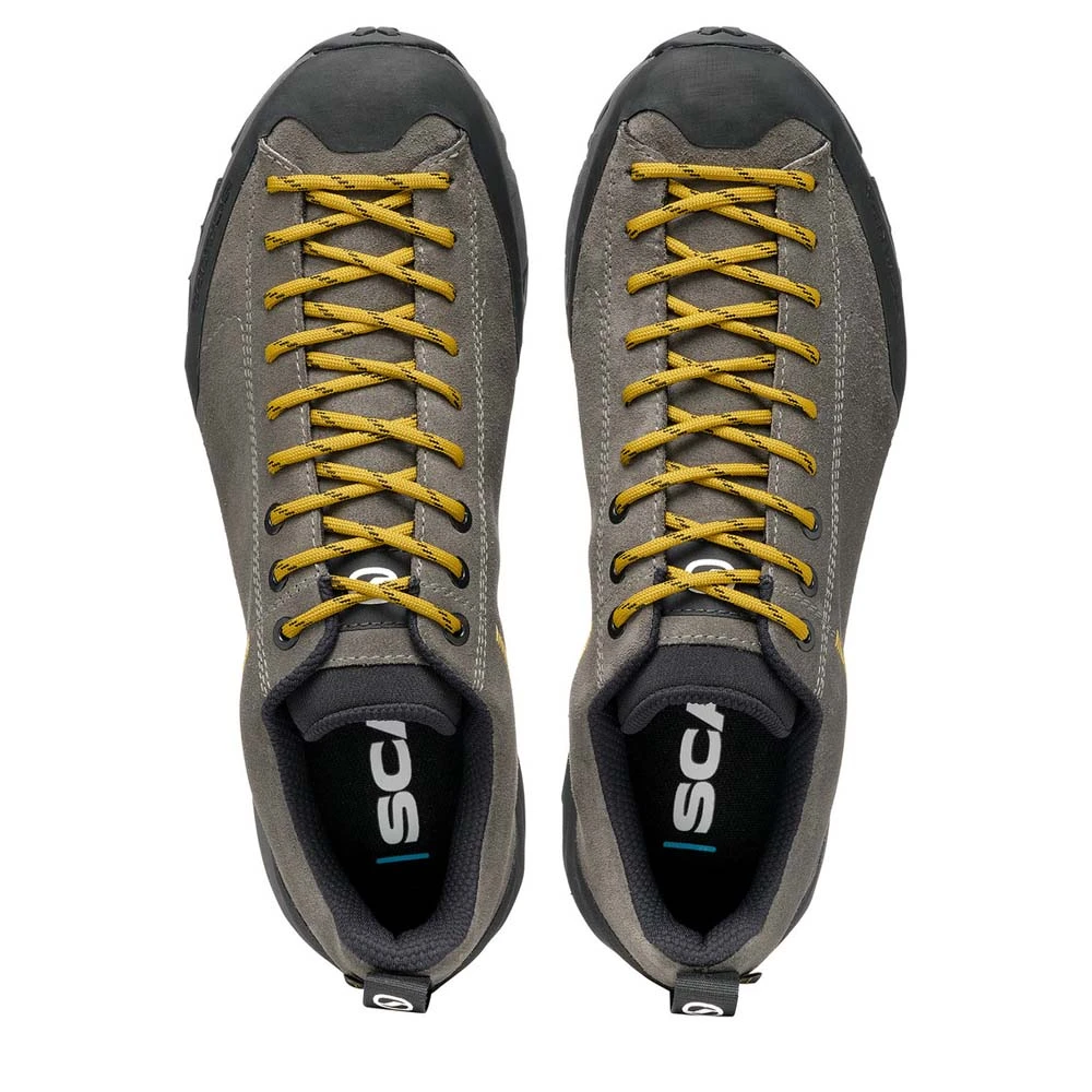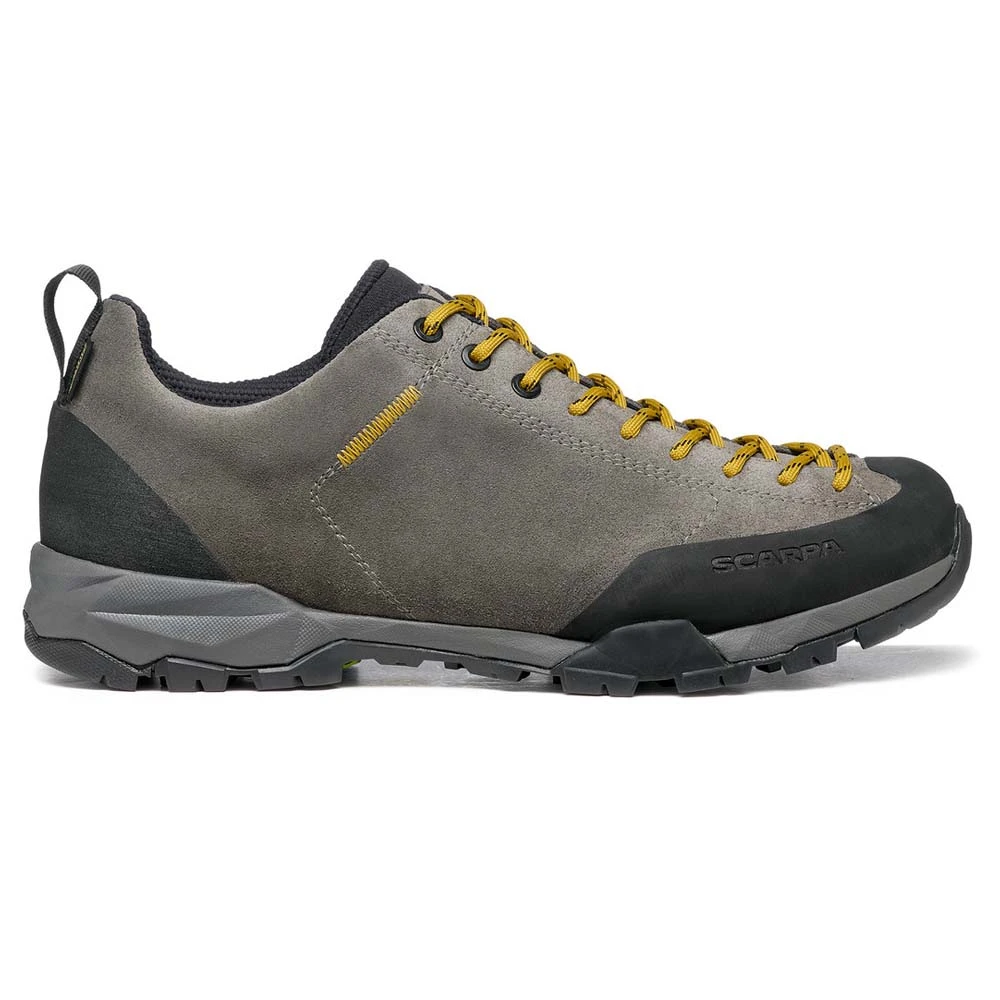 Der Mojito Trail GTX für Herren von Scarpa ist ein komfortabler Multifunktionsschuh für ausgedehnte Spaziergänge, Städteausflüge oder leichte Wanderungen. Durch das Futter mit wasserdichter und atmungsaktiver GORE-TEX Membran, bleiben die Füße auch bei unbeständigem Wetter zuverlässig trocken. Schotter und Geröll sind dank der griffig profilierten und sehr komfortablen Laufsohle kein Problem. Das aus der Kletterwelt übernommene Schnürsystem, das bis zu den Zehen reicht, garantiert eine bestmögliche Anpassung.