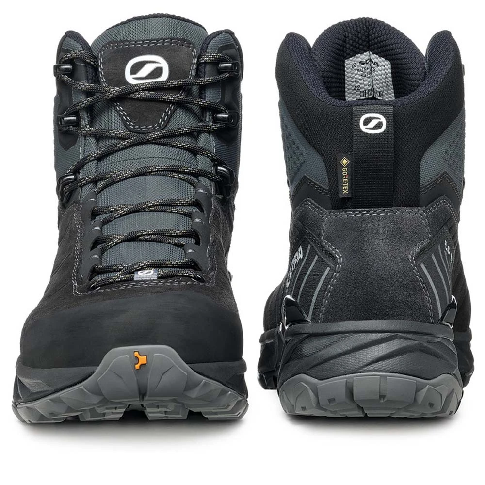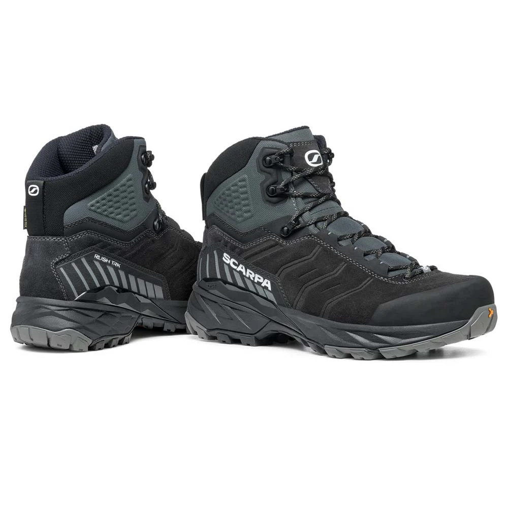 Der Rush TRK GTX für Herren für Scarpa eignet sich besonders für Tagesausflüge. Die neue Version des Rush Trek hat ein Obermaterial aus qualitativ hochwertigem Nubuk-Leder und wurde mit Fokus auf Komfort entwickelt. Die richtige Mischung aus Komfort, Stabilität, Leichtigkeit und Technologien, die helfen können, die Ermüdung der Füße zu reduzieren. Obermaterial aus Nubuk-Leder mit Eigenschaften wie Wasserdichtigkeit, Atmungsaktivität und Haltbarkeit. Dank des 3D-Autofit-Kragens mit einer Stoffpolsterung im Knöchelbereich, die ihn schützt, wird der Fuß ohne Druckstellen stabilisiert.