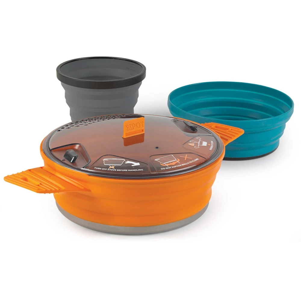 Ein kompaktes Koch- und Geschirrset für den Solo-Camper. Mit faltbarem Topf, faltbarer Schüssel und faltbarem Becher. Der X-Pot 1.4L kann auch als ergänzender Kochtopf in einem der anderen X-Series Kochsets verwendet werden. Das Set beinhaltet einen X-Pot 1.4L in Orange, eine X-Bowl in Pacific Blue und einen X-Mug in Grey.