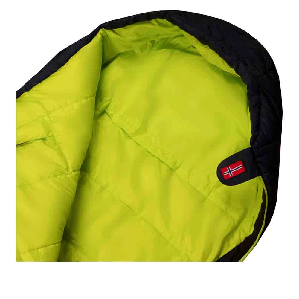Die mit einer Kordel regulierbare Konturkapuze bewahrt den Kopf vor dem Auskühlen. Im integrierten, praktischen Kissenfach wird das Lieblingskissen verstaut und vor dem Verrutschen bewahrt. Der lange 2-Wege Reißverschluss ermöglicht ein bequemes Ein- und Aussteigen und ist mit einer „Autolock“-Funktion ausgestattet. Diese verhindert ein ungewolltes Öffnen im Schlaf. Die Reißverschluss-Wärmeleiste bietet Schutz vor Kältebrücken und vermeidet ein Verklemmen des Reißverschlusses. Auf der Innenseite ist eine praktische Tasche zum Verstauen von Wertsachen angebracht. Mithilfe des mitgelieferten Packsacks lässt sich der Schlafsack auf ein Packmaß von nur 23 x 25 cm komprimieren.