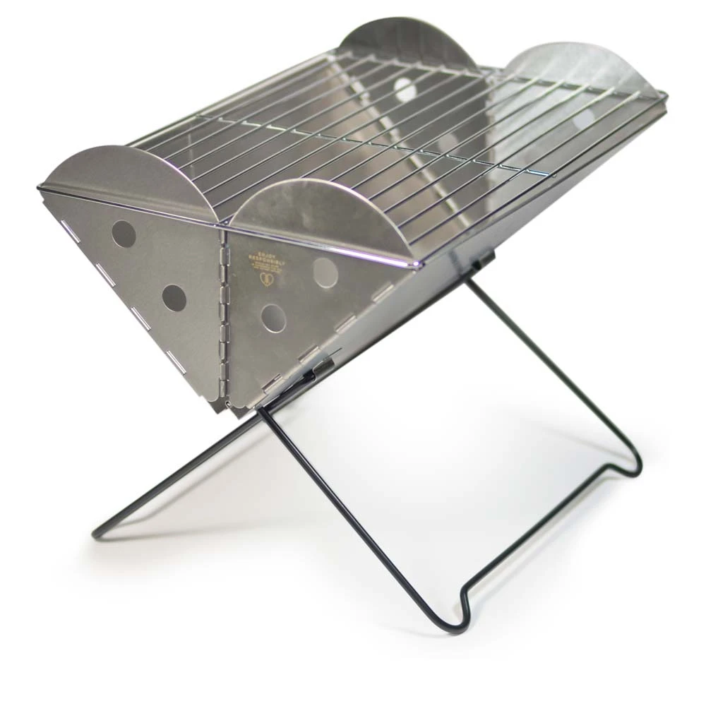 Fläach zusammengefaltet lässt sich die UCO Grill- und Feuerschale einfach transportieren. Mit einem Gewicht von nicht mehr als rund einem Kilogramm fällt sie dabei auch fast nicht auf. Unterwegs lässt sie sich in Sekundenschnelle aufbauen. Die stabilen Edelstahlwände sorgen dabei für einen ordentlichen Windschutz, der Abstand zum Untergrund ist groß genug, um sicher und ohne Schäden an der Natur anzurichten zu grillen.