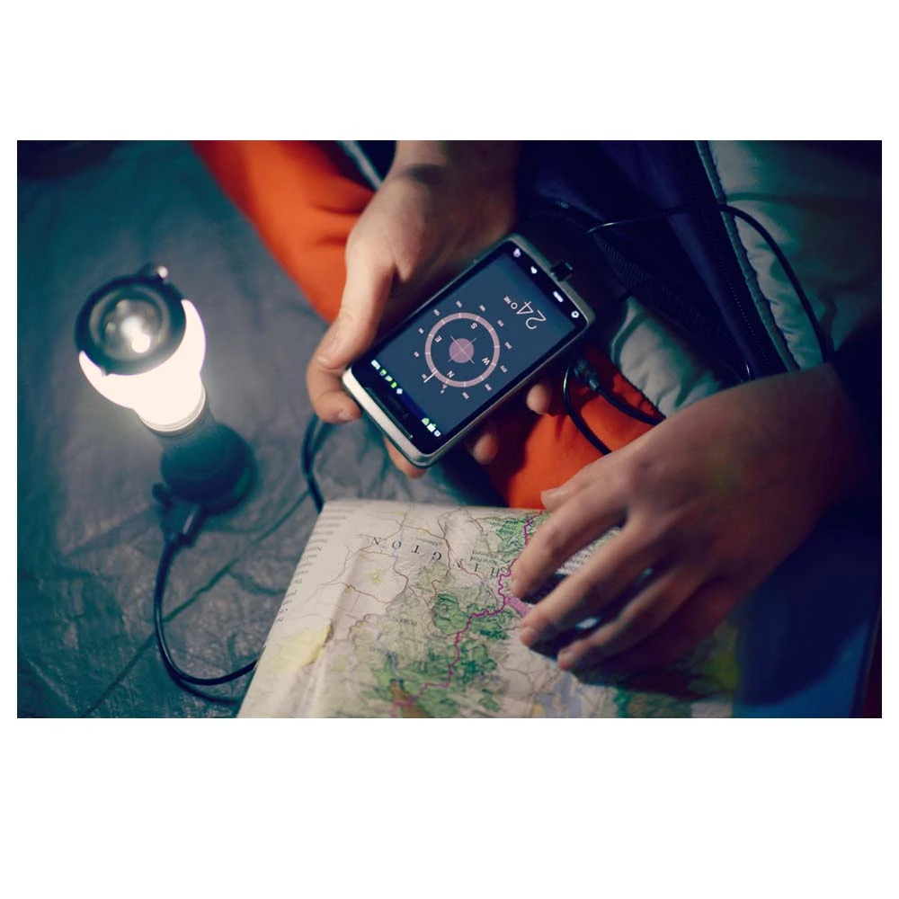 - Zur Aufladung für kleine elektronische Geräte (Kamera, Handy, GPS) via USB geeignet